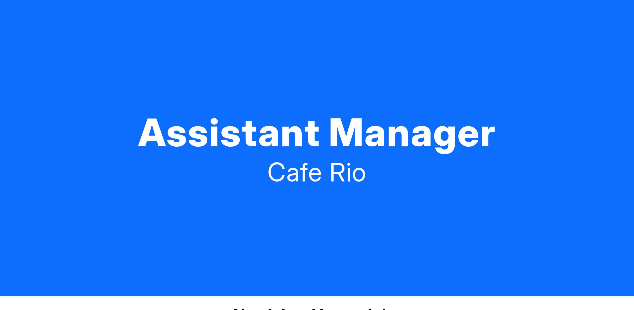 Cafe Rio Mexican Grill is serving up fresh opportunities! We are looking for high energy assistant managers. Do you have a passion for cooking up great food? Do you want to be apart of a team that's creating opportunities and changing the lives of everyone we serve?