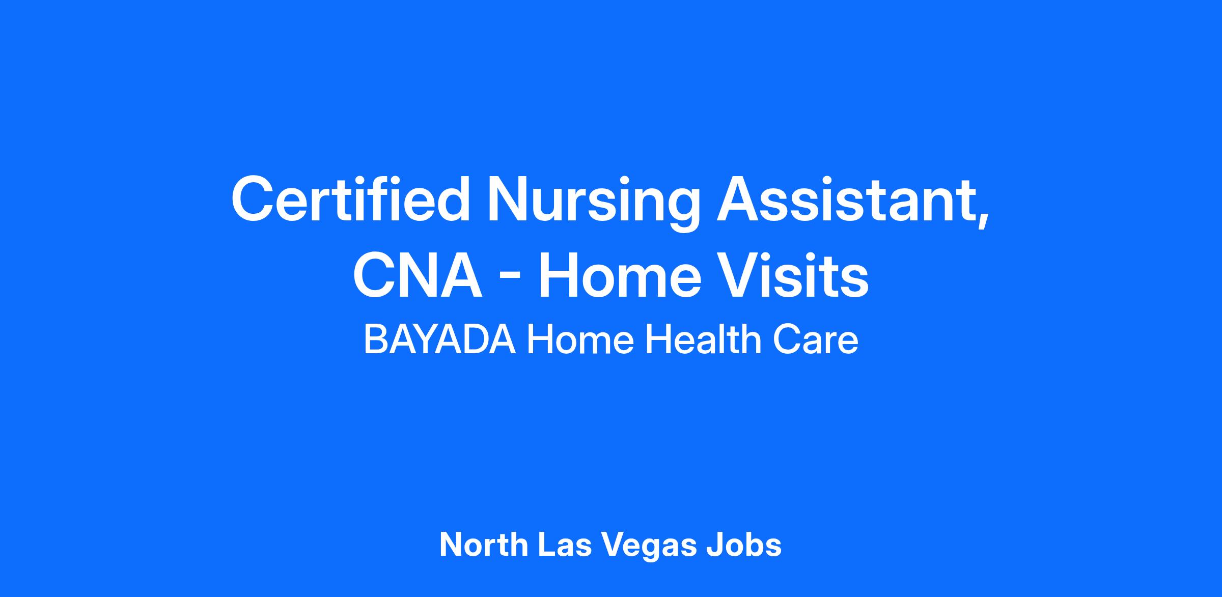 Valley Health at Home by BAYADA is currently seeking a Certified Nursing Assistant, CNA for a per diem / part time opportunity performing short home health visits with adult patients in territories throughout the Las Vegas Valley.
