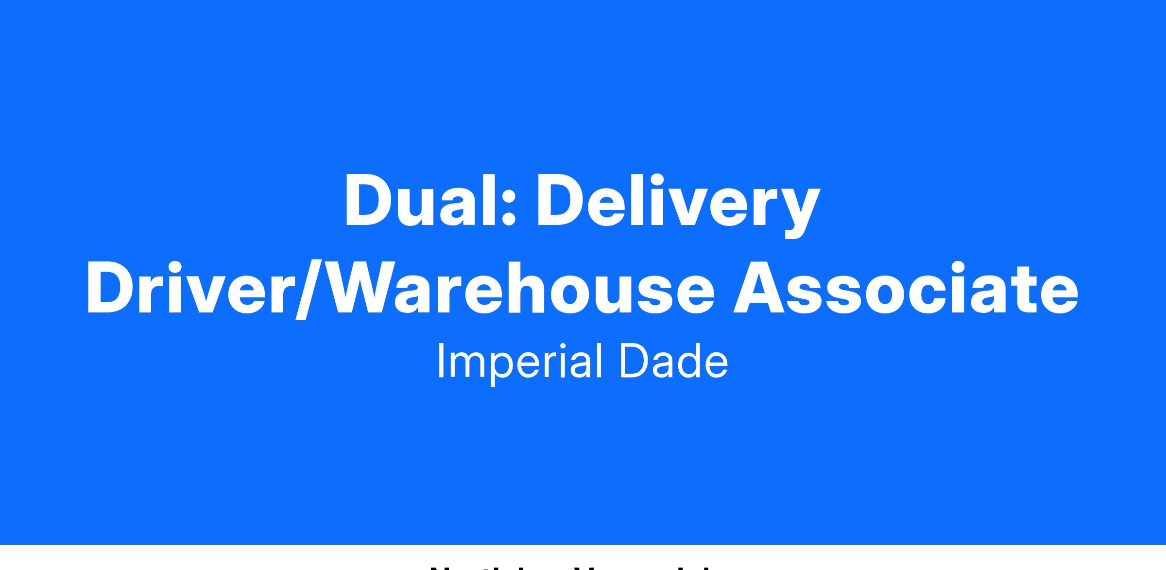 Imperial Dade, a leading North American distributor, has a Dual Delivery Driver/Warehouse role available in Las Vegas, NV! If you’re eager for your next opportunity, Imperial Dade is a great place to take that next step.