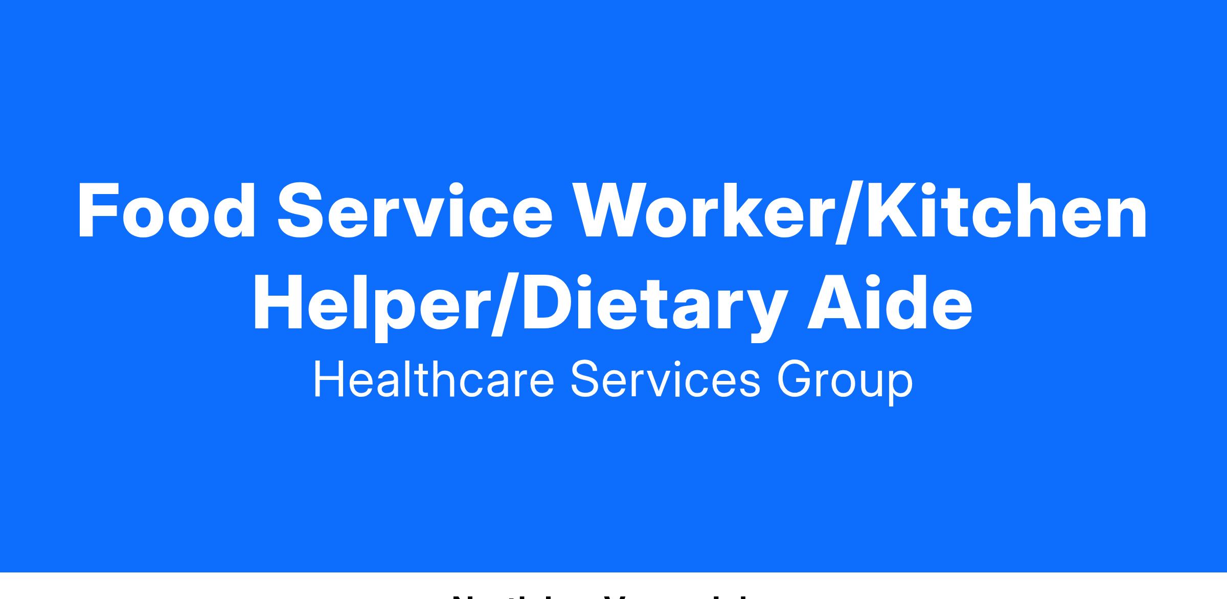- Kitchen Helper / Dietary Aide - Assists the Cook in the preparation and service of meals, places prepared food on plates/trays following tray tickets in line with our established policies and procedures, and, as may be directed by the Food Services Director/Manager or Cook, to ensure that quality food service is provided at all times. Prepares and delivers food and trays, washes dishes, and cleans and sanitizes the kitchen according to health standards.