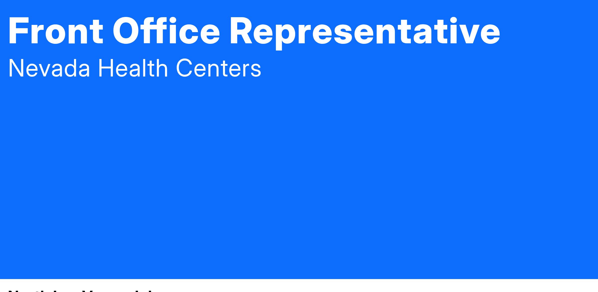 At Nevada Health Centers, we look for people who will embrace our vision of excellent service. Who have the desire to serve and make a difference in our communities. We value as an organization diversity and inclusion. If you can see yourself here and can deliver a positive impact, then check out some of the details below!