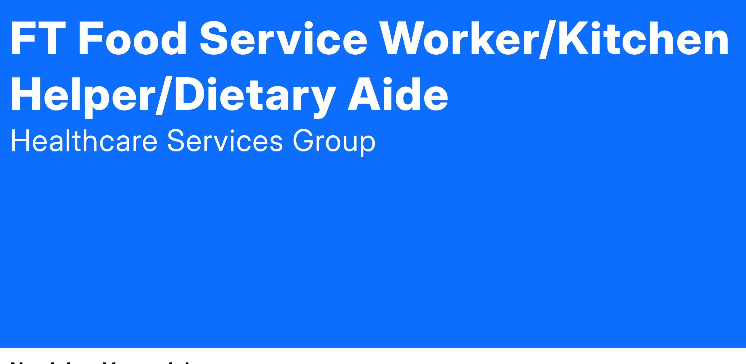 FT Food Service Worker/Kitchen Helper/Dietary Aide