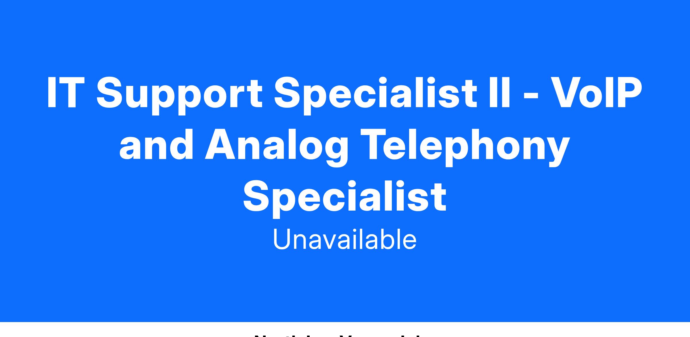 The Information Technology department is seeking a high-performing individual to join our team as an IT Support Specialist II – VoIP and Analog Telephony Specialist.