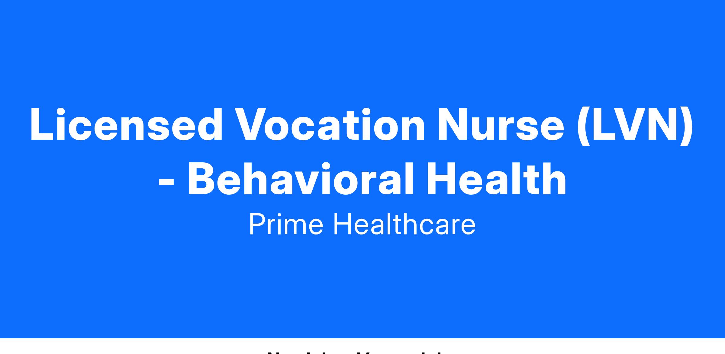 Licensed Vocation Nurse (LVN) - Behavioral Health