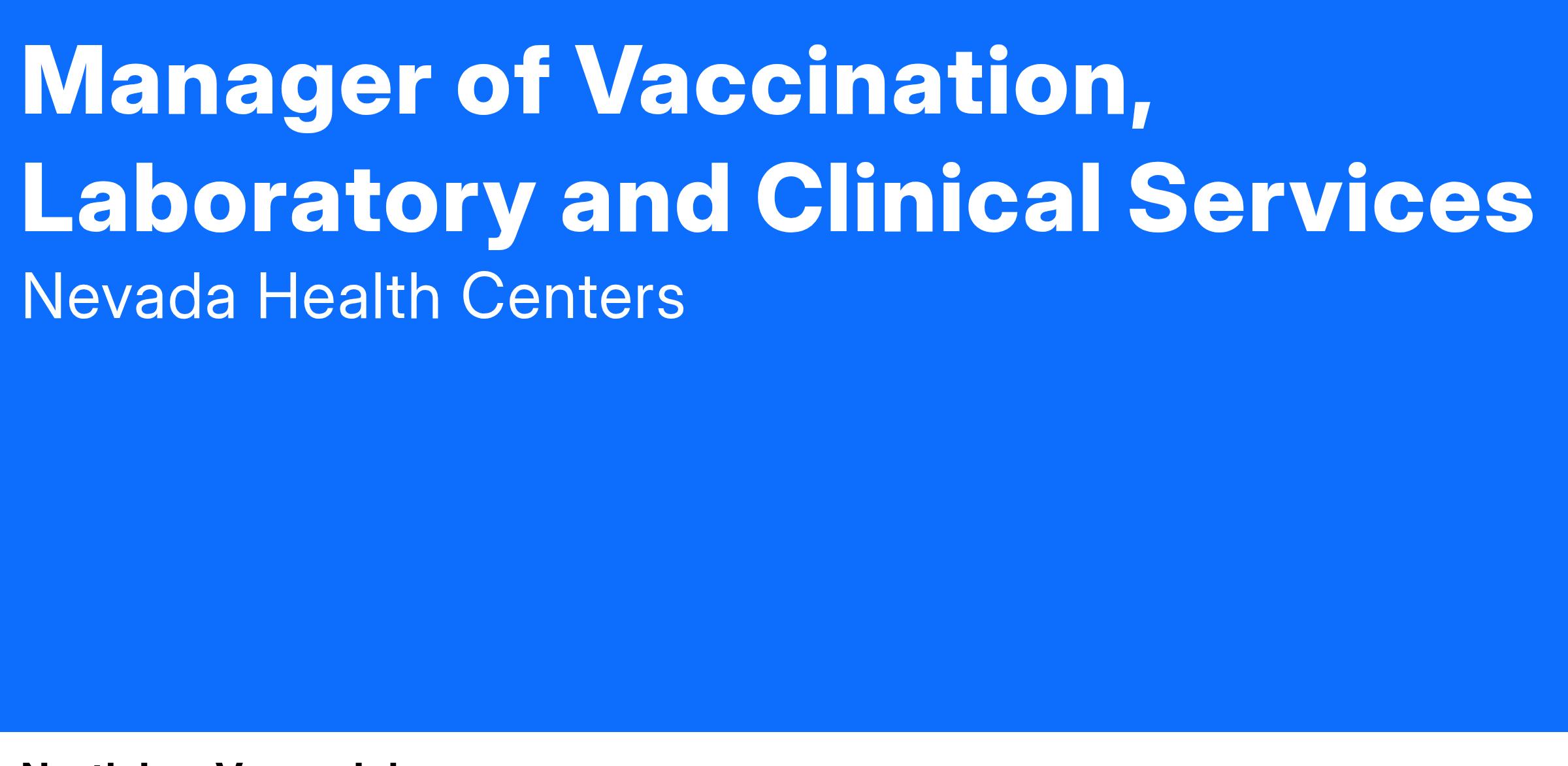 The RN Clinical Manager is a Registered Nurse who will provide oversight of NVHC’s vaccine programs (for adults and children). They will be working closely with the operational leaders, clinical services department, pharmacy and clinical team. The Clinical Manager will perform regular site reviews and work closely with Practice Managers/Site Supervisors and the individual clinic vaccine coordinators (and back up coordinators) to ensure that Immunization policies and procedures/protocols are written, reviewed, updated and followed on an annual basis. She/he will oversee the NVWeb IZ program and help staff to understand this program. This position will also train the vaccine coordinators/ back up coordinators at each clinical site on the NVHC vaccine policies/procedures and protocols.