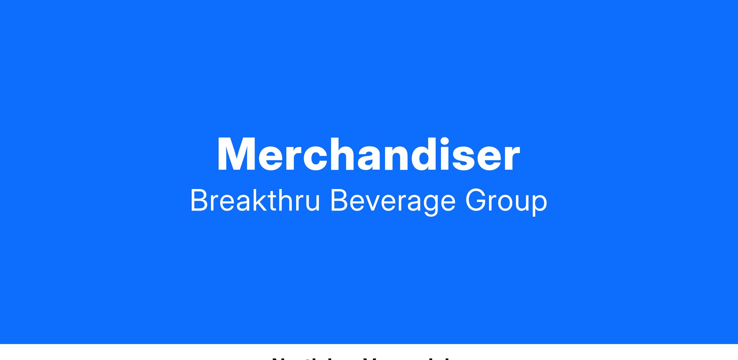 As a Merchandiser at Breakthru Beverage, you will creatively showcase our brands through building displays, managing inventory and product placement. If you are the type to roll up your sleeves, have a desire to progress your career in sales — and have a car to drive to our customers’ locations — then come join our fun, family-based culture.