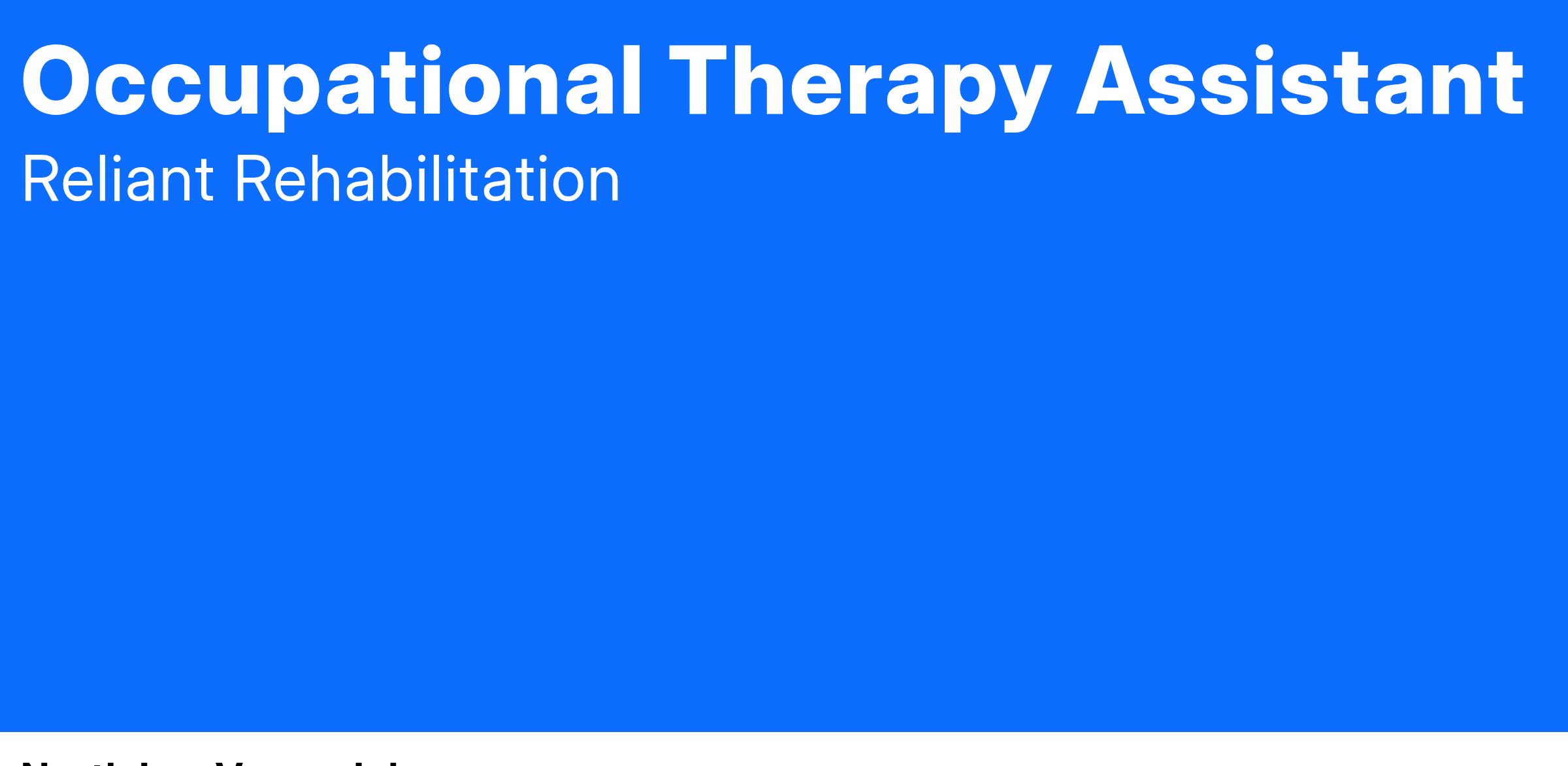 Provide Occupational Therapy and related services for patients under the direction of a licensed Occupational Therapist (OT) while maintaining positive levels of interaction with facilities and clients in accordance with the principles and practices of occupational therapy and within Reliant Rehabilitation guidelines. Provide quality patient care including: ongoing treatment per a plan of care, supervision of Rehab Techs (where required), and case management responsibilities. Maintain professional conduct that represents Reliant Rehabilitation’s commitment to quality and service in all interactions with clients, including positive levels of interaction and rapport with facilities and clients. Adhere to all state and federal regulations regarding occupational therapy.