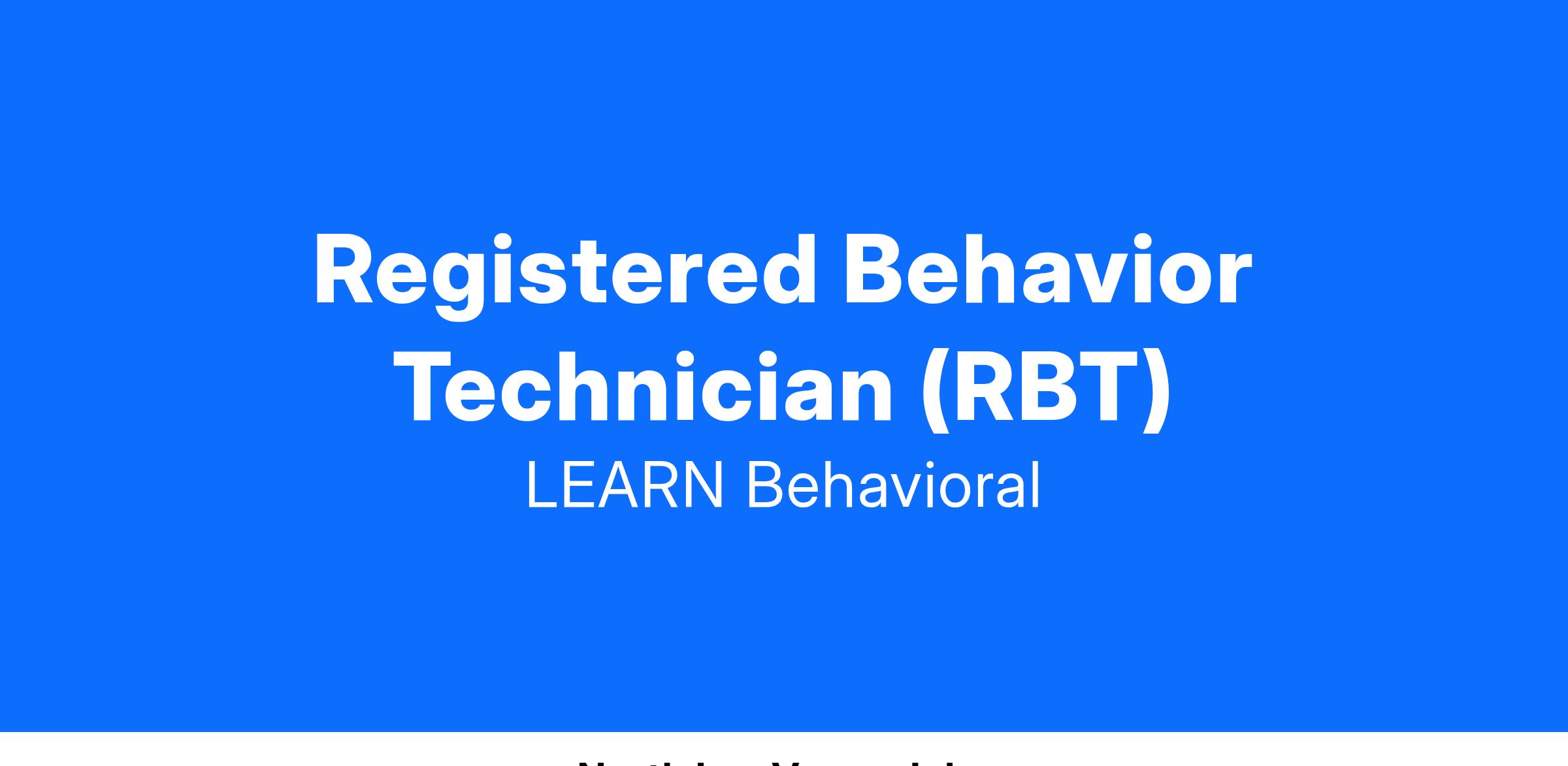 This position is similar to the following positions at other companies: behavioral technician, behavior therapist, registered behavior technician, RBT, board certified autism therapist, BCAT, behavior treatment technician, ABA tutor, line therapist, behavior interventionist, autism instructor, licensed behavior analyst, and board certified behavior analyst.