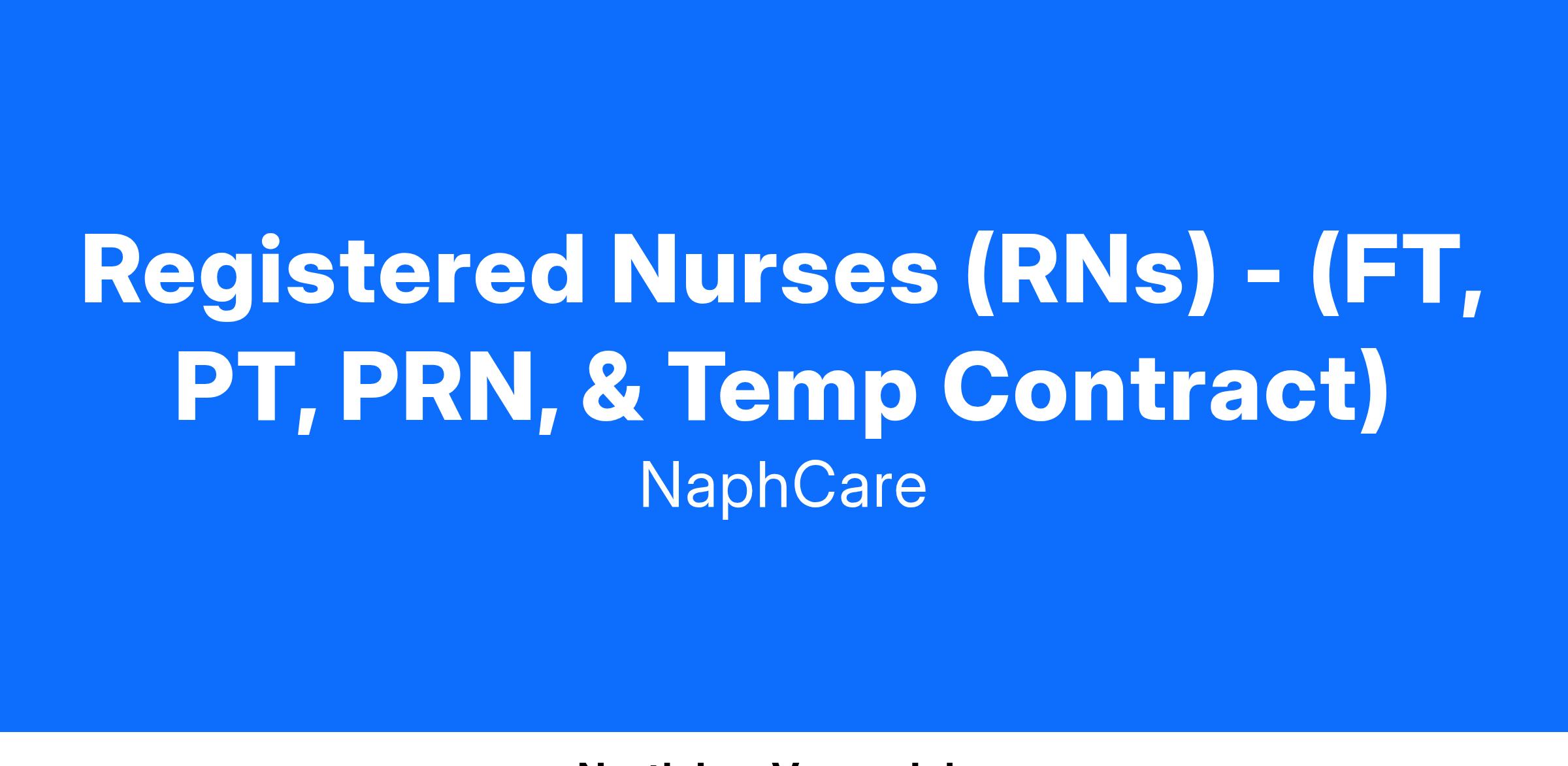 NaphCare is a family owned, healthcare technology company that has been delivering high quality healthcare to correctional facilities across the nation for over 35 years. Come join our team of over 5000 employees and growing! NaphCare pays well, offers outstanding benefits, and has an incredibly engaged corporate support team to make sure you have what you need to be truly excellent at what you do.