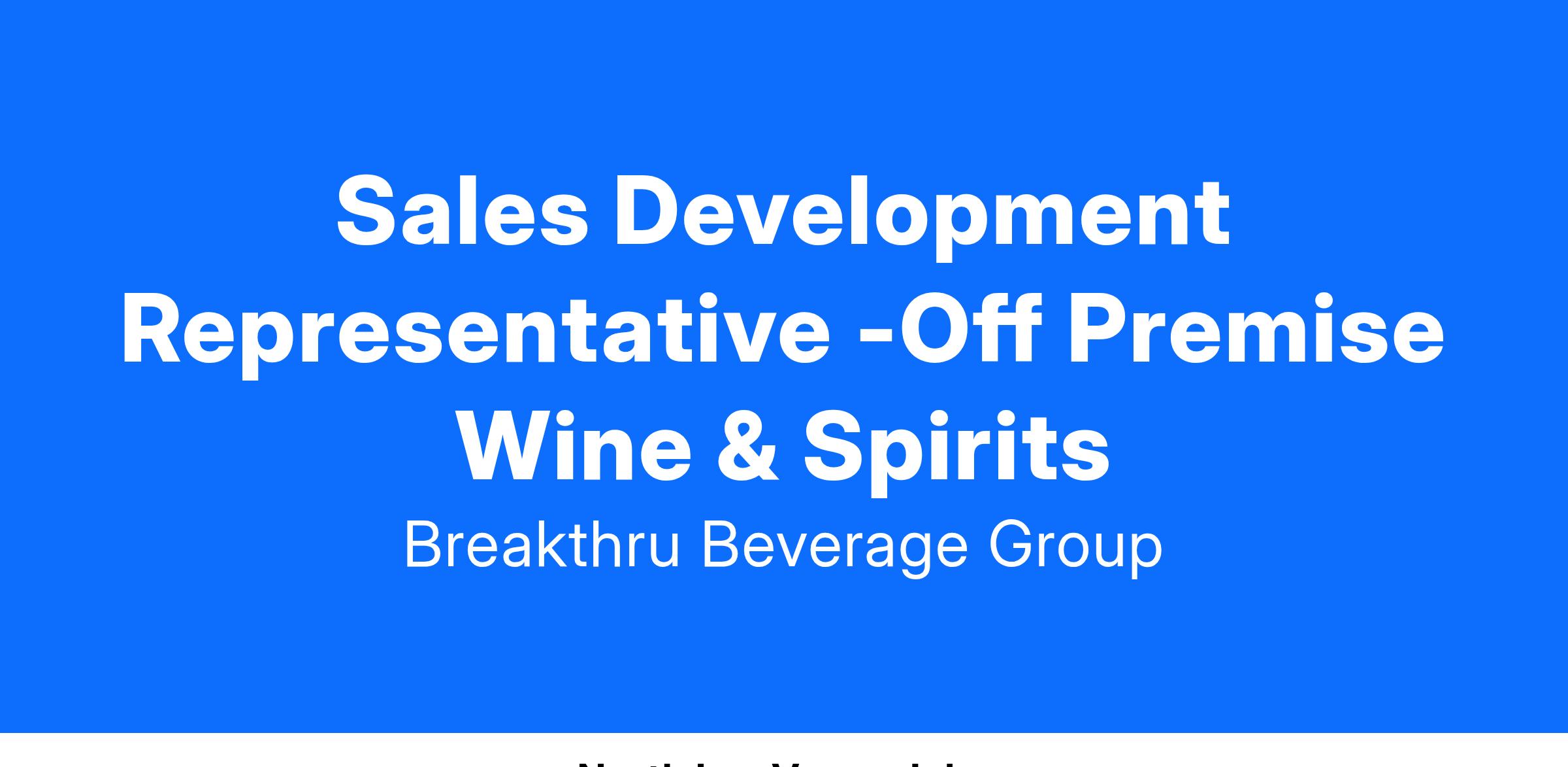 Sales Development Representative -Off Premise Wine & Spirits