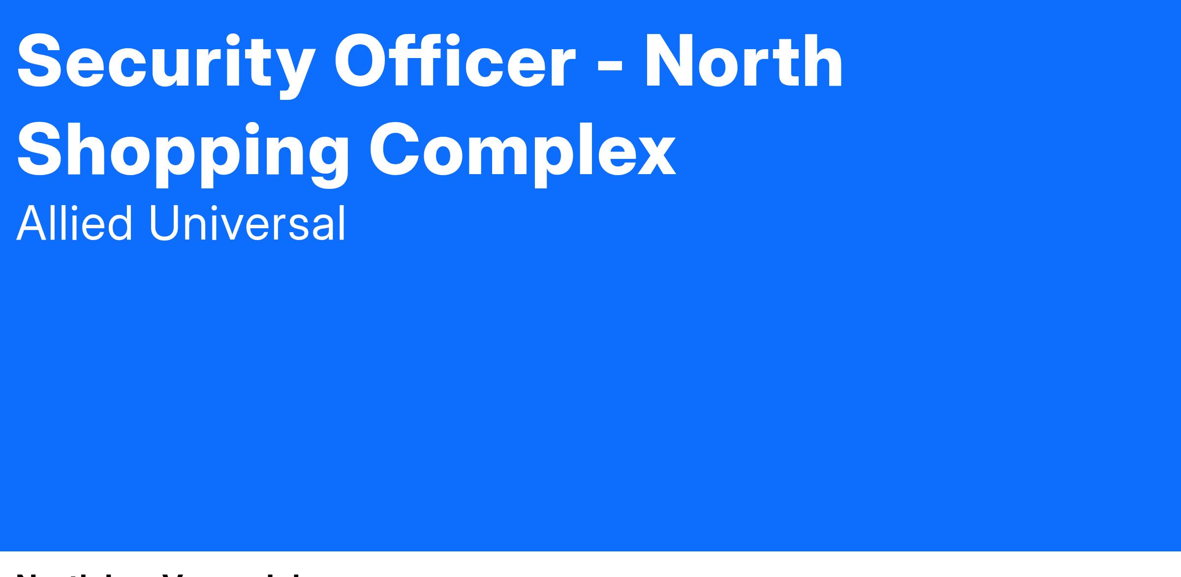 Allied Universal Security is seeking an Unarmed Security Professional to join our North Shopping Complex Mobile Patrol Team in a full time schedule on the evening shift!