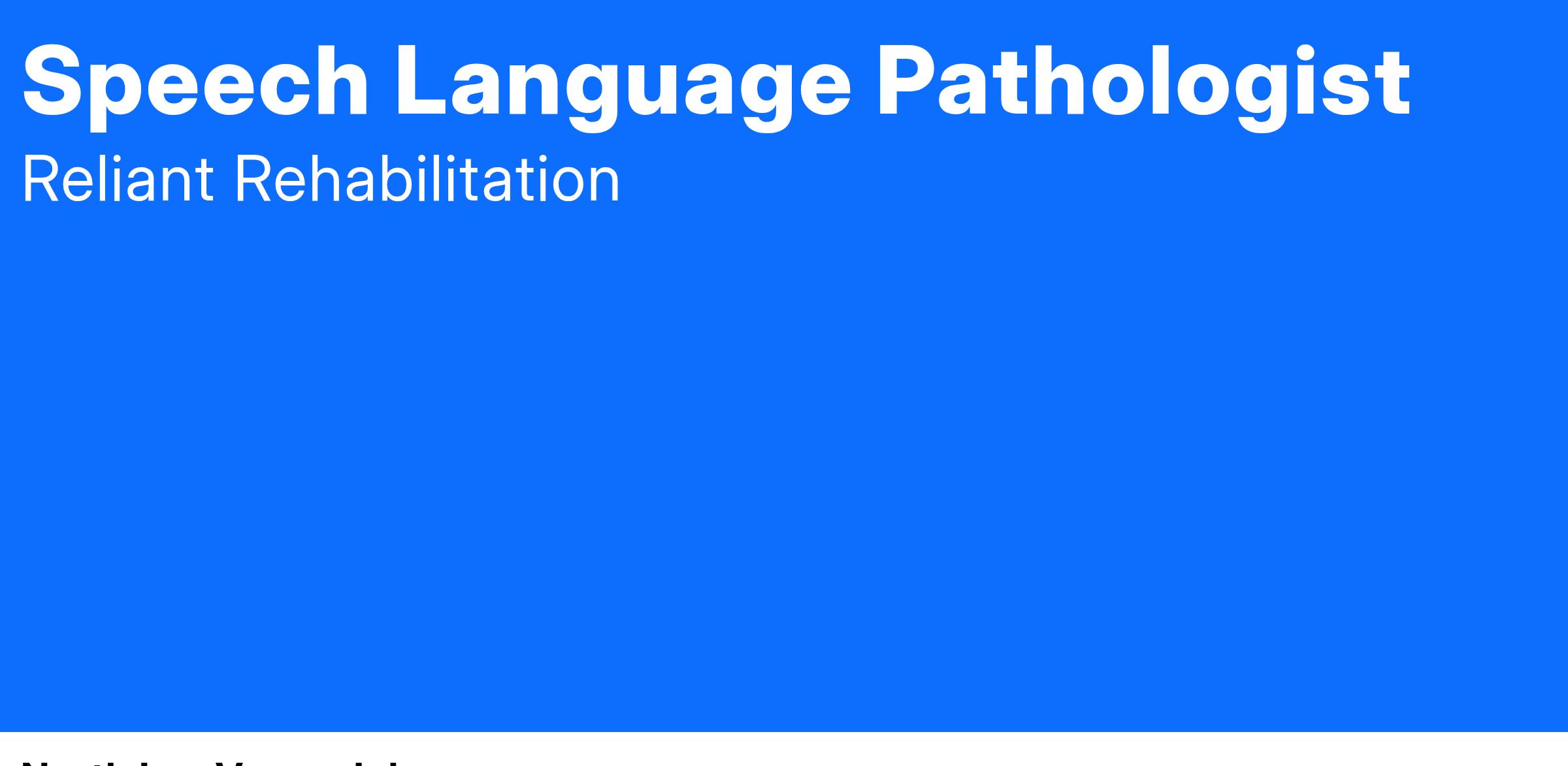 Provide Speech-Language Pathology (SLP) Therapy and related services for patients while maintaining positive levels of interaction with facilities and clients in accordance with the principles and practices of Speech-Language Pathology therapy and within Reliant Rehabilitation guidelines. Provide quality patient care including screening and evaluation of patients, development of initial and ongoing treatment plans of care, discharge plan, and case management responsibilities. Maintain professional conduct that represents Reliant Rehabilitation’s commitment to quality and service in all interactions with clients, including positive levels of interaction and rapport with facilities and clients. Adhere to all state and federal regulations regarding speech-language pathology therapy.