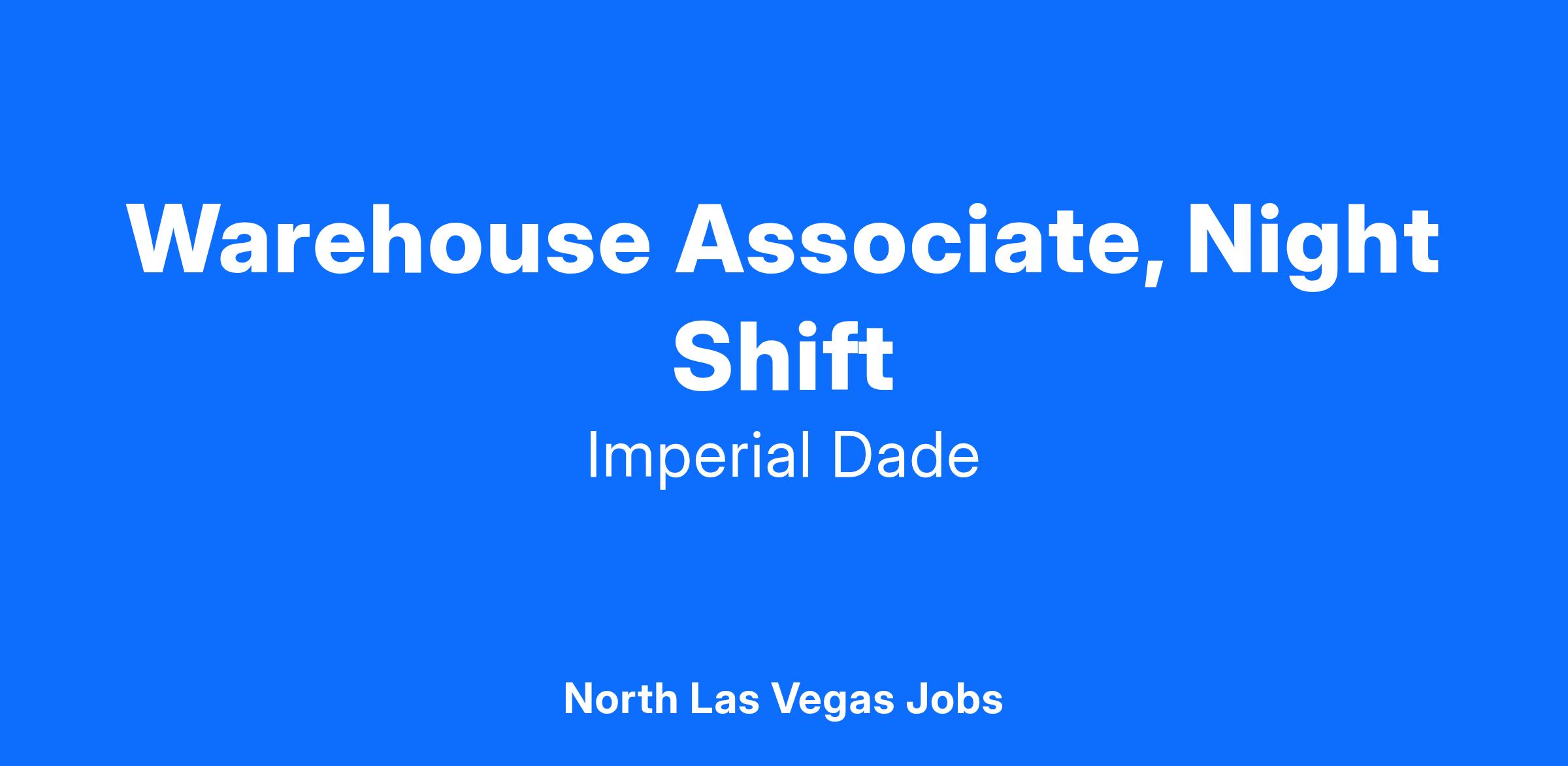 Imperial Dade, a leading North American distributor, has a Warehouse Associate - Night Shift role available in Las Vegas, NV! Join a strong and continuously evolving group, helping to continue to grow our business. If you’re eager for your next opportunity, Imperial Dade is a great place to take that next step.