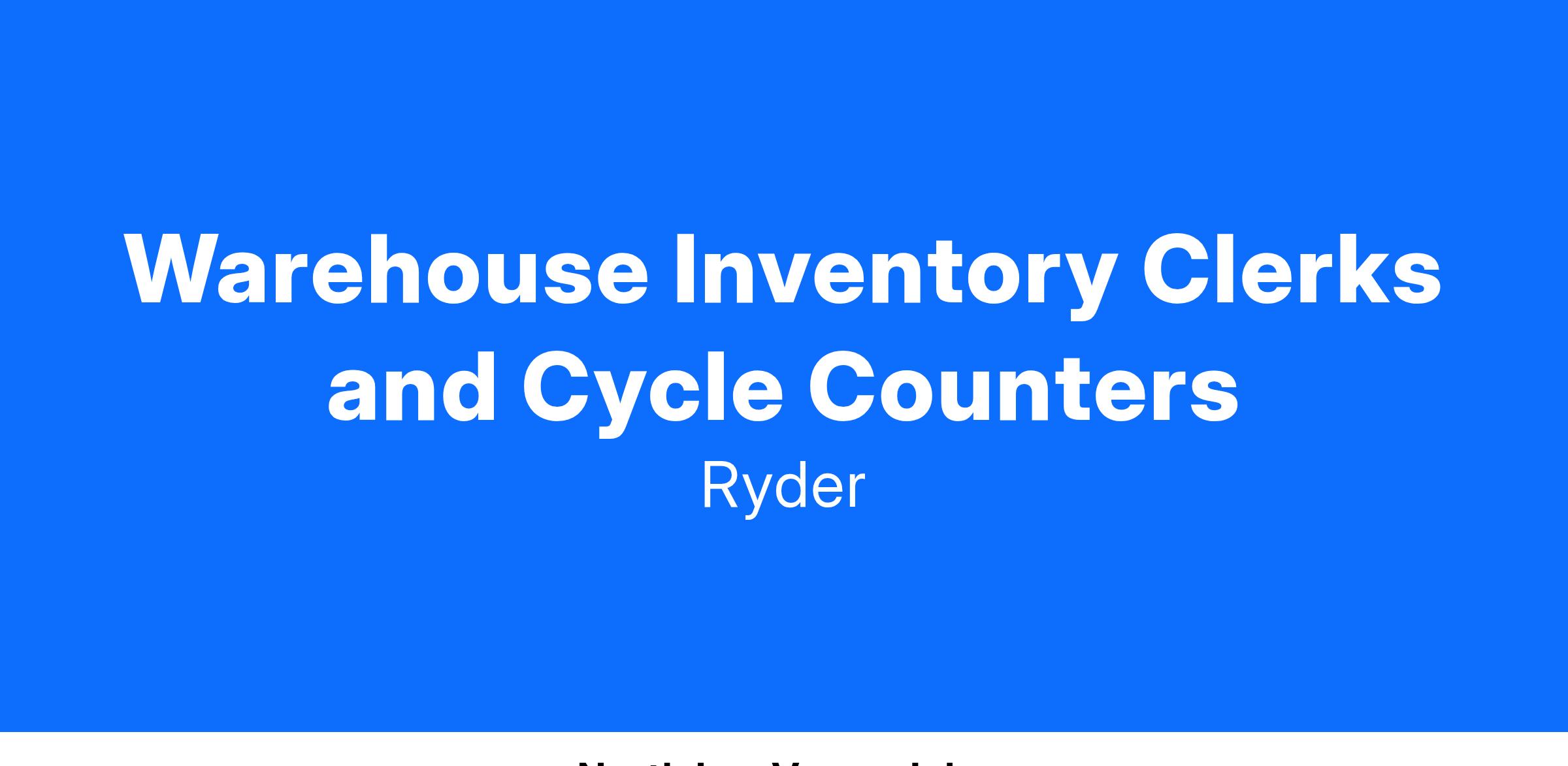 Ryder is immediately hiring a Permanent Full Time Warehouse Inventory Clerks / Cycle Counters in North Las Vegas, NV