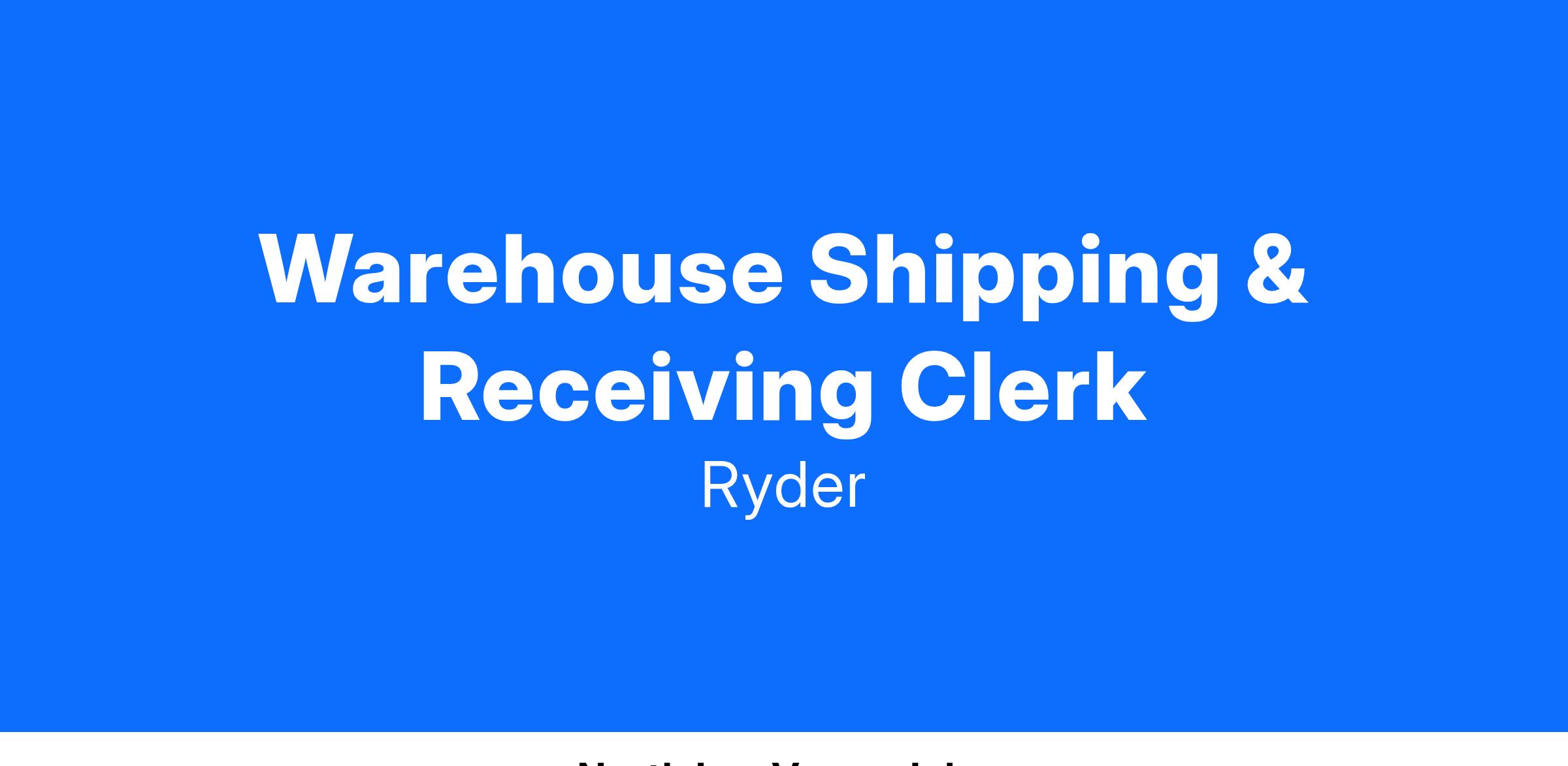 Ryder is immediately hiring a Permanent Full Time Shipping and Receiving Coordinators in North Las Vegas, NV